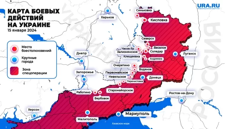 Карта СВО на Украине по состоянию на 15.01.2024