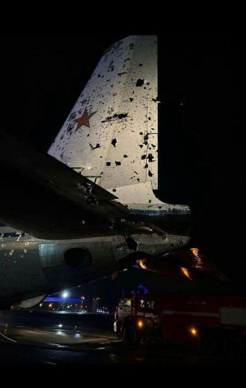Накануне днём военные корреспонденты опубликовали кадры, на которых предположительно запечатлен ИЛ-22, подбитый над Азовским морем и посаженный в воздушной гавани Анапы. На фото можно заметить изрешеченный хвост самолета.
