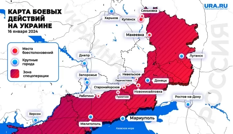 Карта СВО на Украине по данным на 16.01.2024