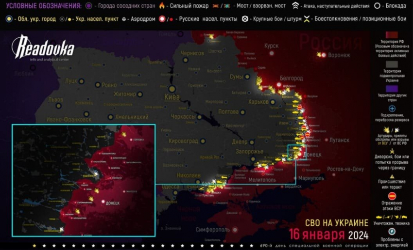 Карта СВО на Украине от 17.01.2024, обзор боевых действий в зоне военной спецоперации
