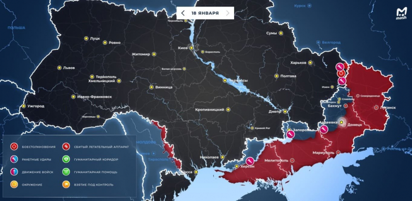 Карта СВО на Украине по данным на сегодня, 18 января