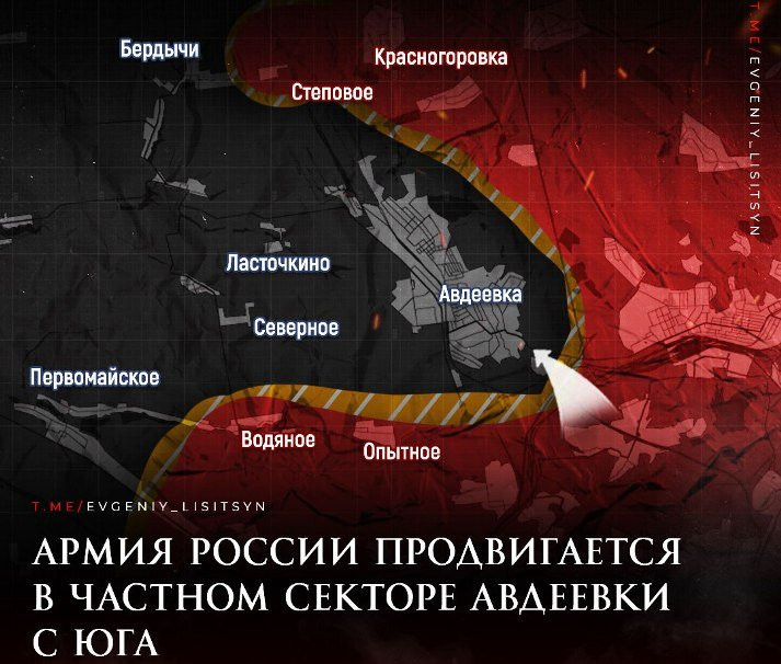 На Авдеевском направлении ВС РФ была прорвана основная оборонительная линия ВСУ на данном участке и как минимум нейтрализован основной укрепрайон, который мешал продвижению ВС РФ на юге и юго-западе Авдеевки, информирует военкор Евгений Лисицын в своём Telegram-канале. Это произошло после взятия укрепленного пункта в районе бывшего комплекса отдыха «Царская охота».