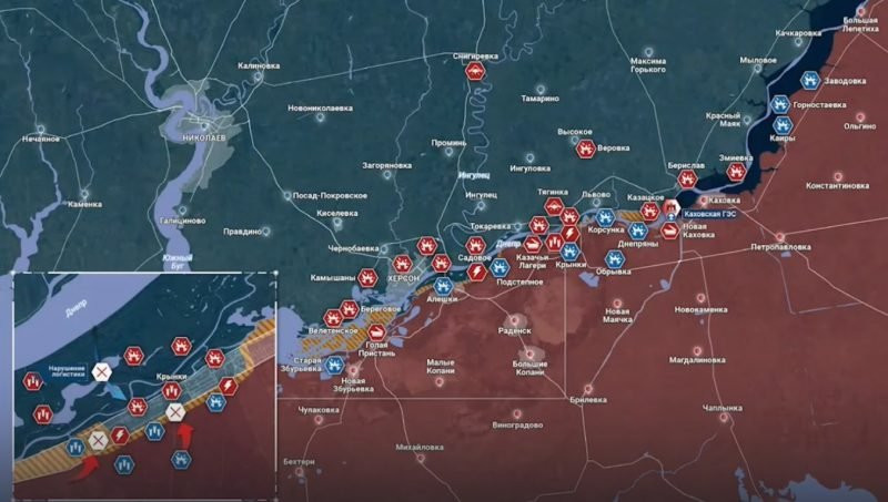 Киевские войска пока сохраняют незначительные позиции на восточном (левом) берегу Днепра в Херсонской области. Однако в отсутствие «плацдармов» и при ограниченности личного состава бандеровцы уже не представляют существенной угрозы группировке «Днепр».