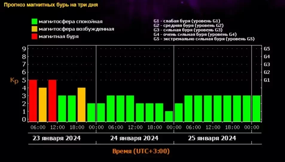 Эксперты рассказали о геомагнитной обстановке в среду, 24.01.2024