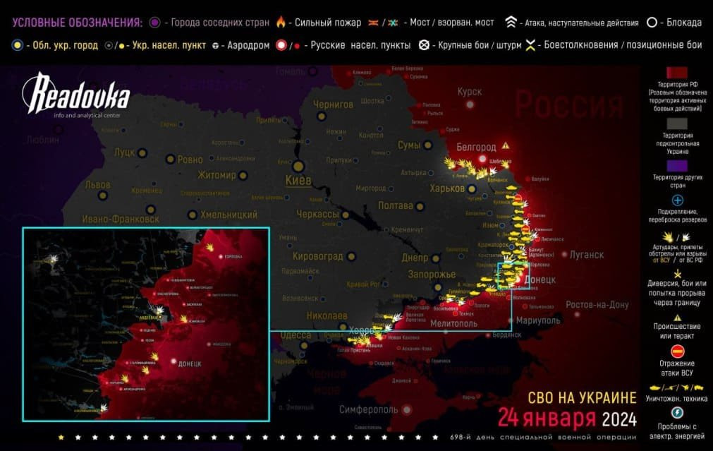 Последние новости СВО от 25 января 2024. Карта боевых действий на Украине на сегодня, военная сводка