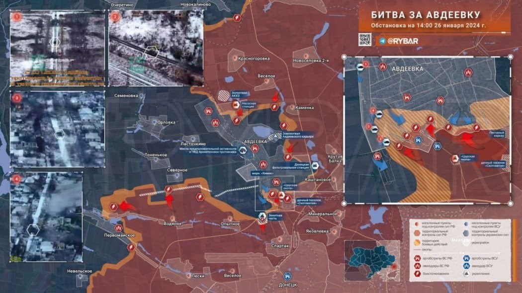 Новая карта боевых действий за Авдеевку по состоянию на сегодня, 27.01.2024
