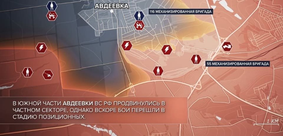 Боевые действия в их активной фаза не прекращаются на Авдеевском направлении. Как российские, так и украинские источники указывают на продвижение Вооружённых сил Российской Федерации (ВС РФ). Для российских войск важно расширить зону контроля непосредственно внутри города Авдеевка, что находится в Донецкой Народной Республике (ДНР).