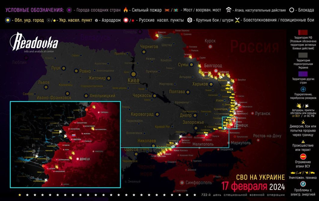 Новая военная сводка на сегодня, 18.02.2024 - карта боевых действий, ситуация на фронте на Украине, ход специальной военной операции (СВО), а также военно-политические новости в мире, связанные со спецоперацией - в материале N4k.