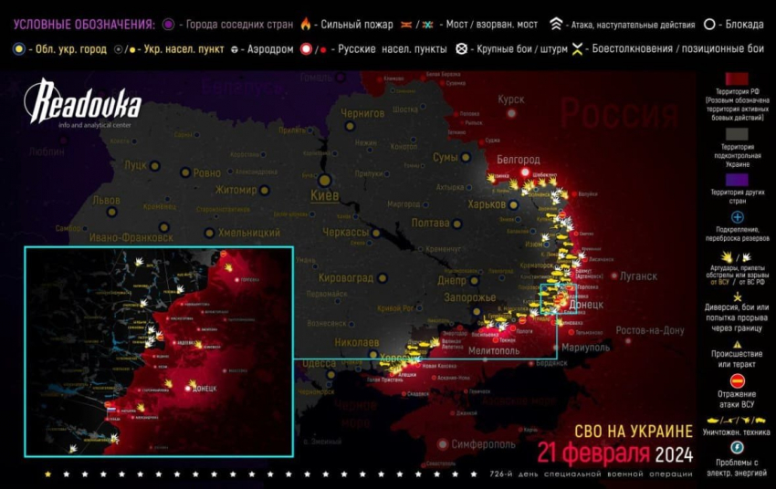 Оперативная сводка о боях на Украине от 22.02.2024 - карта боевых действий, обзор свежих событий по состоянию на утро сегодняшнего дня. Наш сайт Triboonaпредставляет вашему вниманию новости о ситуации в зоне проведения специальной военной операции (СВО).