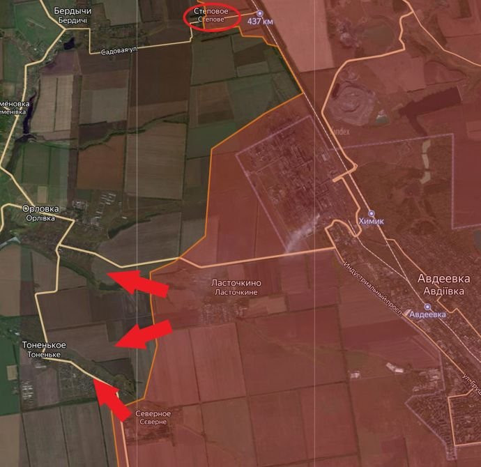 Обновлённая карта боевых действий на Украине по данным на 12:00 мск сегодня, 27.02.2024
