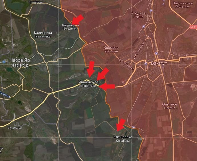 На Артёмовском направлении ВС РФ продолжили штурмовые действия на высотах северо-западнее Клещеевки и в Ивановском. За сутки линия боевого соприкосновения существенно не изменилась. Под ударами позиции Вооружённых сил Украины (ВСУ) в Андреевке, Часовом Яре, Григоровке и Раздоловке. ВС РФ - в Артёмовске и Ягодном, пишет Telegram-канал Wargonzo.