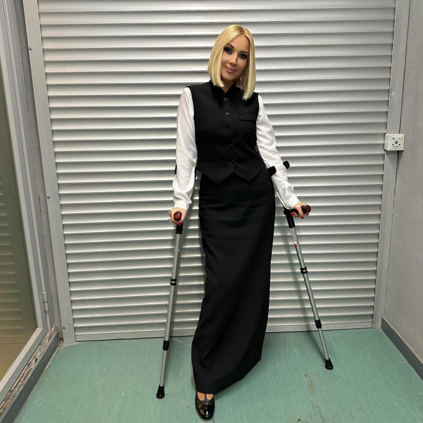 Телеведущая и актриса Лера Кудрявцева опубликовала в своей социальной сети новое видео, в котором видно, что она впервые вернулась в студию после проведенной тяжелой операции на ноге. В размещенном ролике ведущая передвигается умело на костылях, встречается с коллегами, выглядит довольно радостно.