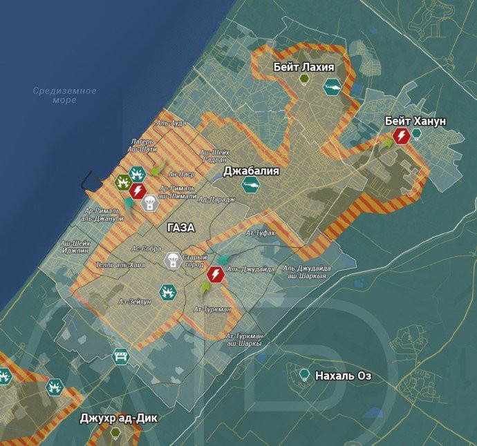 Что касается центральной части сектора Газа, то здесь ЦАХАЛ не проводит наземных операций, а лишь опирается на свою авиацию. Под ударами за последние сутки оказались Аль-Муграка, Аль-Захра, Аль-Брейдж и ряд других населённых пунктов. В Дейр аль-Балахе после удара со стороны Израиля в числе погибших значатся не менее 20 человек.