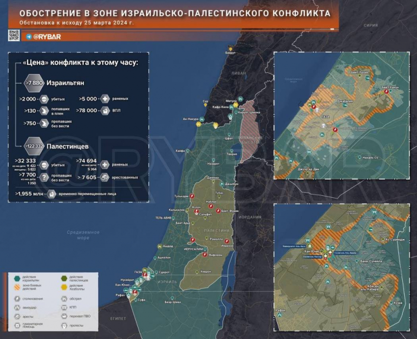 Война в Израиле и секторе Газа сегодня. Последние новости из Израиля и Палестины на 26 марта 2024. Карта боевых действий