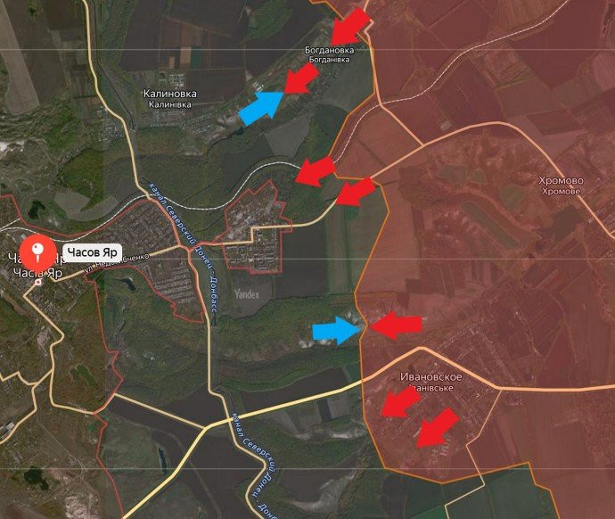 Продолжается наступление ВС РФ на Часов Яр, куда ВСУ перебрасывают резервы. Идут встречные бои. Так же российские войска, в результате штурмовых действий, смогли улучшить свои позиции и продвинуться в Богдановке, пишет Telegram-канал Wargonzo.