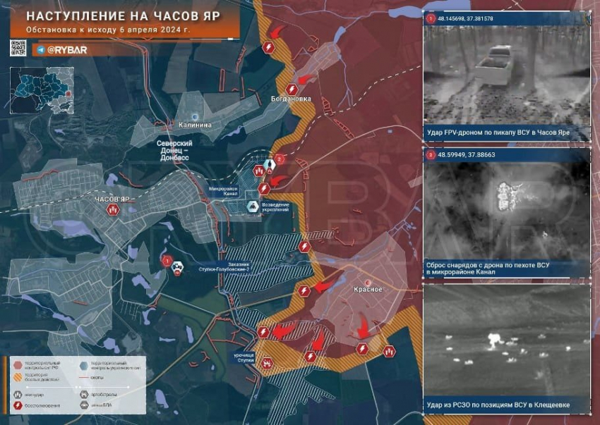 Наступление ВС РФ на Часов Яр. Карта боевых действий на сегодня, 7 апреля 2024. Свежие новости