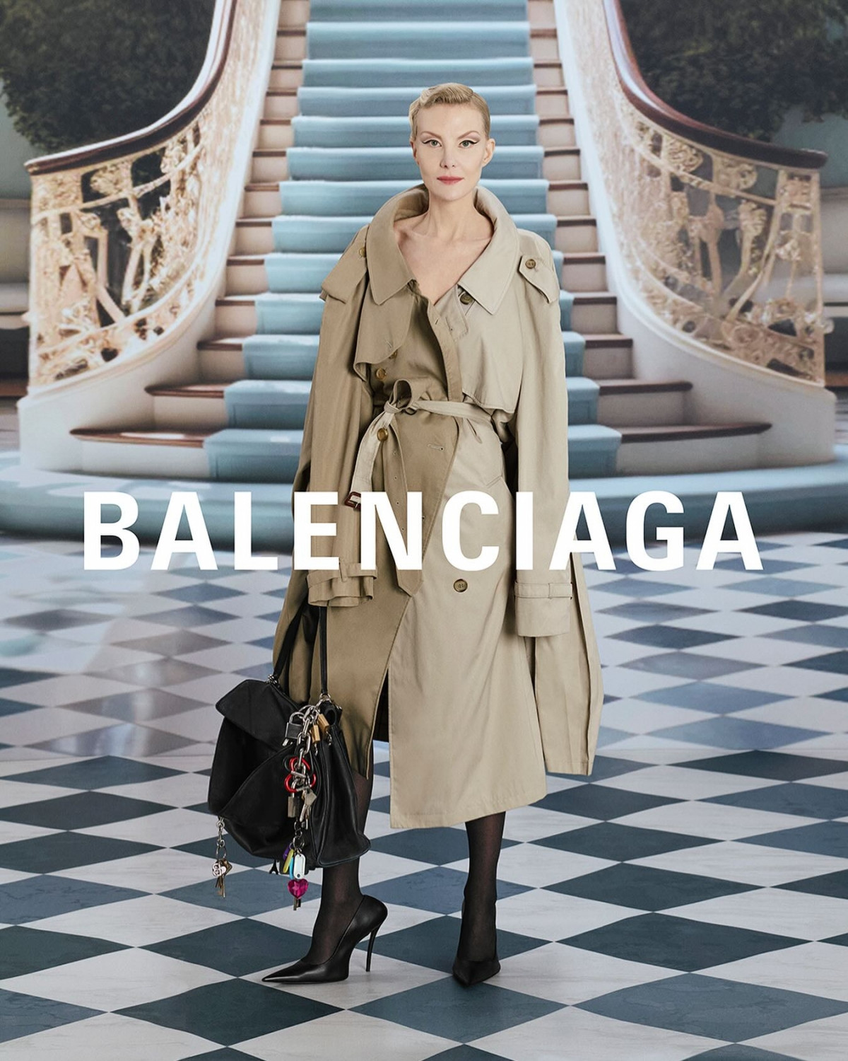 На одном из снимков Литвинова предстала в бежевом тренче, одетым на голое тело, черных колготках и туфлях на высоких каблуках. Также актриса демонстрировала сумку этого бренда.