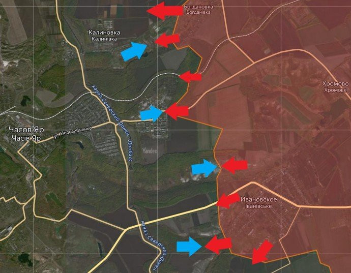 Наступление российских войск на Часов Яр развивается стремительно. Сейчас активные бои ведутся в микрорайоне Канал, являющийся самым восточным микрорайоном города. Известно, что ВСУ стягивают сюда дополнительные резервы. Армия России использует самое различное вооружение. Регулярно из Часов Яра поступают видео, на которых запечатлены мощные взрывы.
