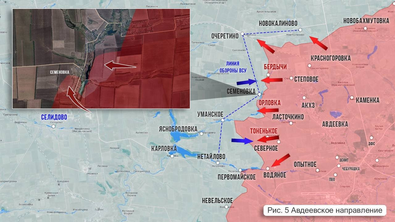 Боевые действия в районе Авдеевки и Часов Яра продолжаются. В их ходе российские войска успешно продвигаются. Авдеевка не так давно была полностью освобождена, тогда как Часов Яр должен быть полностью зачищен в ближайшее время. ВС РФ успешно движутся к этому.