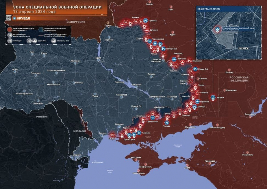 Новая карта боевых действий на Украине сегодня, 14.04.2024