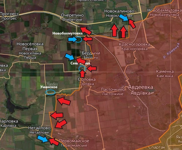 Новая карта боевых действий под Авдеевкой по состоянию на сегодня, 18.04.2024
