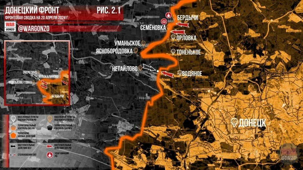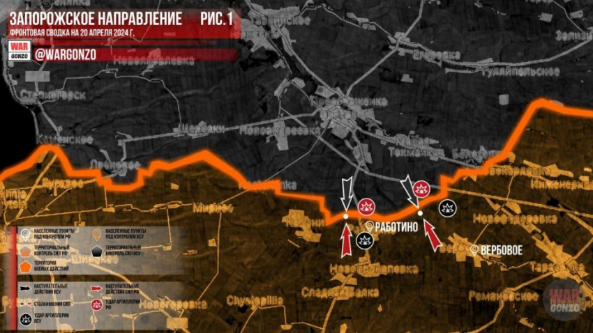 Обновленная карта боевых действий на Украине от 20.04.2024