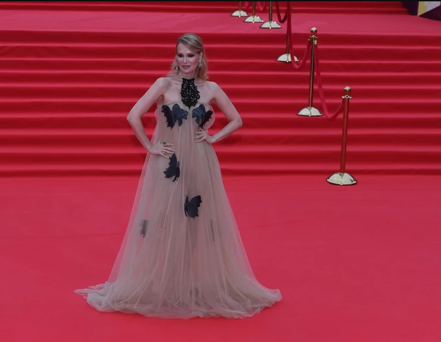 Олеся Судзиловская удивила всех красивым нюдовым платьем-колоколом с анималистичными элементами в голливудском стиле.