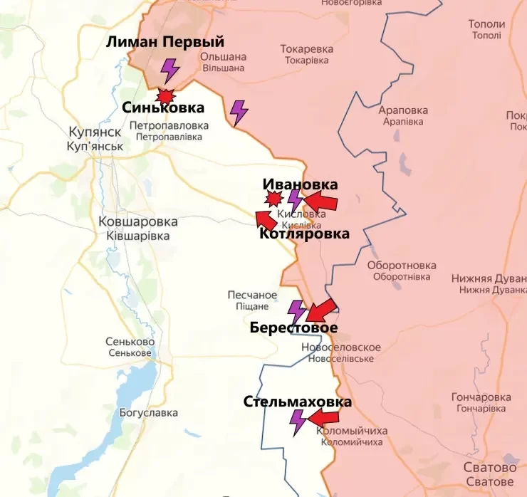 На Купянском направлении сохраняется высокий темп боевых действий в районе Кисловки и Котляровки. Поступает информация о продвижении ВС РФ в направлении Берестовое.