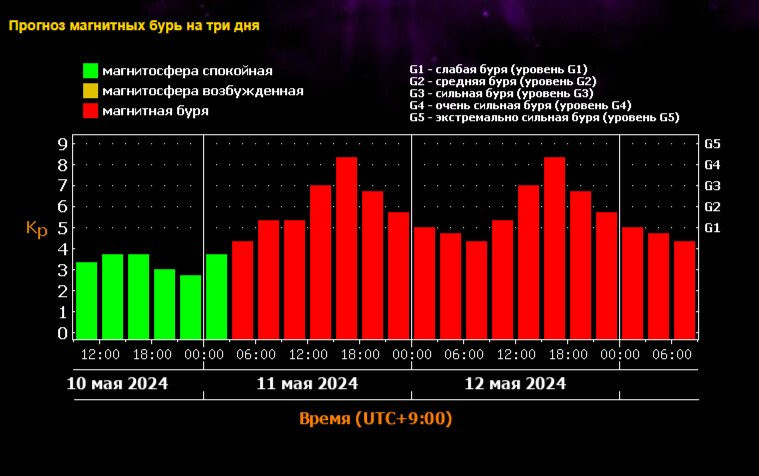 Прогноз магнитных бурь на 10 и 11 мая 2024 года: свежая информация