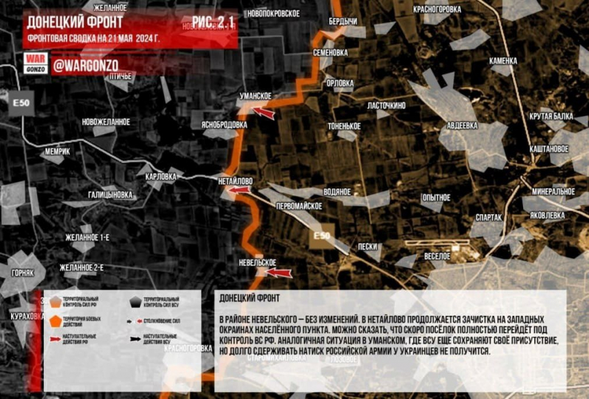 Обновлённая карта боевых действий на Украине в зоне СВО по состоянию на сегодня, 21.05.2024