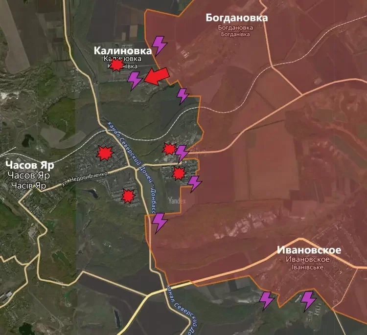 В Часов Яре продолжаются ожесточённые бои в микрорайоне Канал. Подразделения ВС РФ атакуют с юго-востока (высотная застройка) и в центре (бои идут у Часовоярского ремонтного завода). По позициям ВСУ ведётся огонь артиллерией и авиацией.
