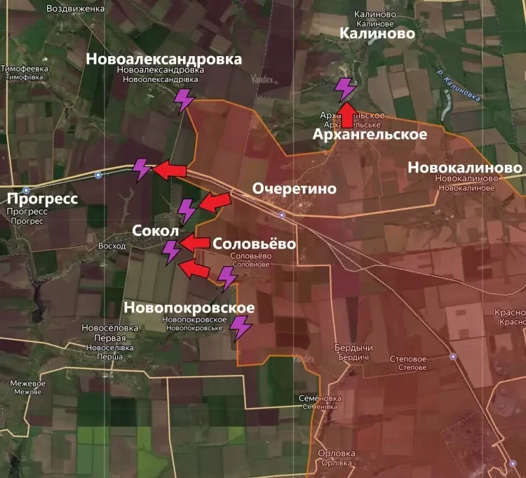На северо-западе от Очеретино продолжаются бои в районе Новоалександровки. Сообщается, что подразделениям ВС РФ в ходе нескольких локальных боёв удалось улучшить своё тактическое положение, но о серьёзном продвижении вперёд речь не идёт, информирует PulsePen.