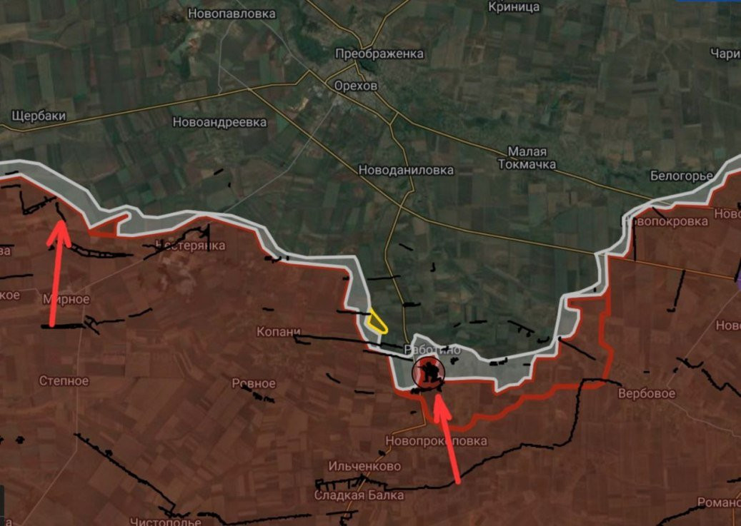 На Запорожском направлении продолжаются бои в районе Работино и северо-западнее Вербового. ЛБС без существенных изменений, информирует Telegram-канал Wargonzo.
