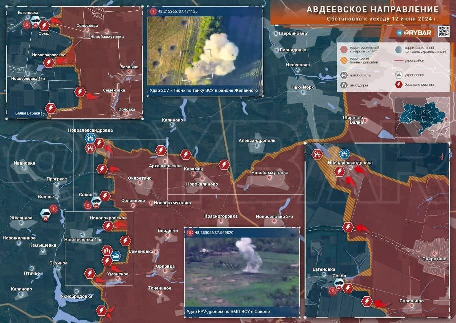 Ситуация под Авдеевкой на сегодня. Карта боевых действий от 13 июня 2024 года, наступление ВС РФ идет успешно