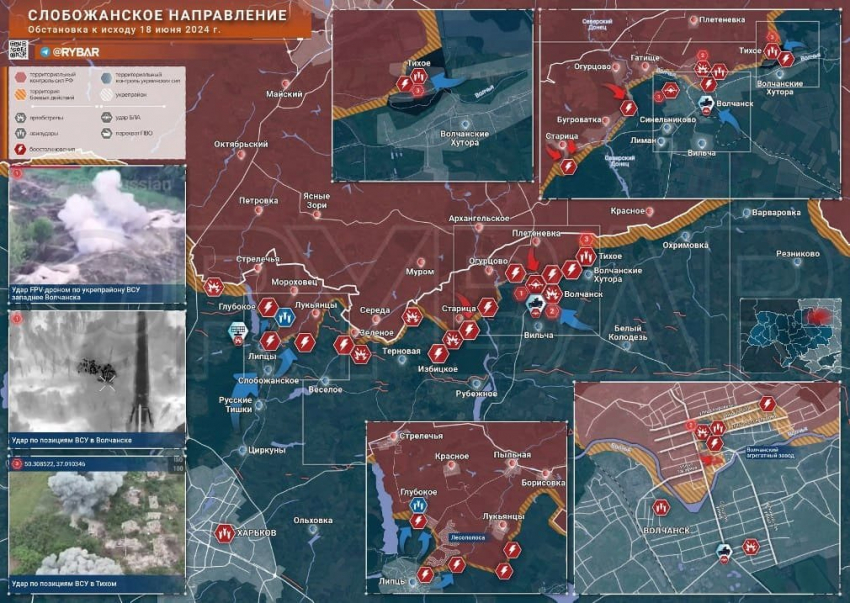 На Слобожанском направлении продолжаются тяжелые бои в Волчанске и под Липцами, а село Тихое подконтрольно противнику и подвергается авиаударам, пишет "Рыбарь".