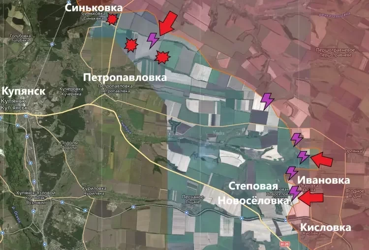 На Купянском направлении не стихают бои в районе Синьковки. Подразделения ВС РФ пытаются расширить зону контроля. Из-за географических особенностей, дающих обороняющейся стороне преимущество и использованию врагом FPV-дронов, возможности для продвижения штурмовых отрядов ВС РФ существенно ограничены.