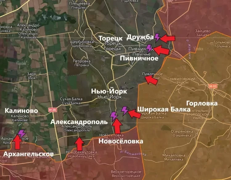 На ЧасовЯровском направлении РФ выдавили ВСУ за канал Северский Донец-Донбасс в Калиновке, приближаясь к полному освобождению села. В Часов Яре идут бои за западные высотки. Уничтожение переправ через канал и работа БПЛА и артиллерии осложнили логистику противника.