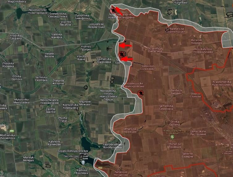 Покровский фронт. ВС РФ имеют тактические успехи в районе Новоалександровки и Сокола. Сохраняется высокая интенсивность боевых действий южнее Новопокровского, в Направлении Яснобродовки и под Невельским.