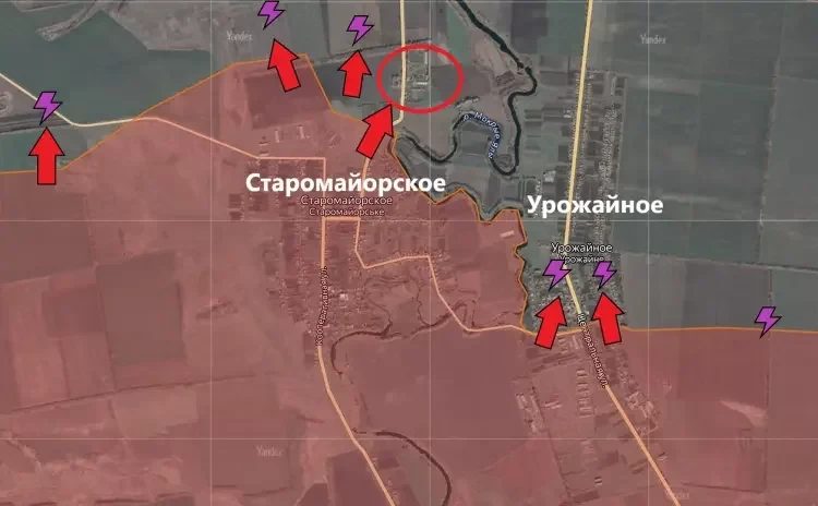 Российские бойцы на данном направлении выбивают украинские объекты и почти достигли северо-восточных окраин Мирнограда.