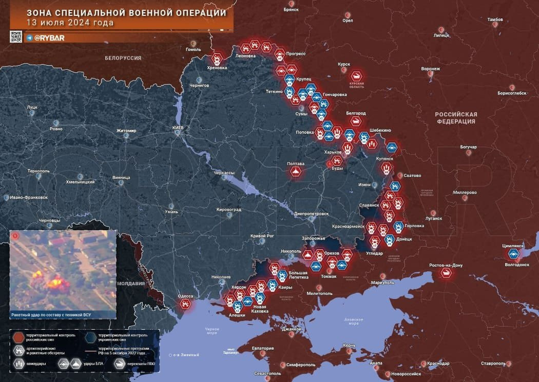 Последние новости СВО на 14 июля 2024. Карта боевых действий на Украине на сегодня, ситуация на фронтах