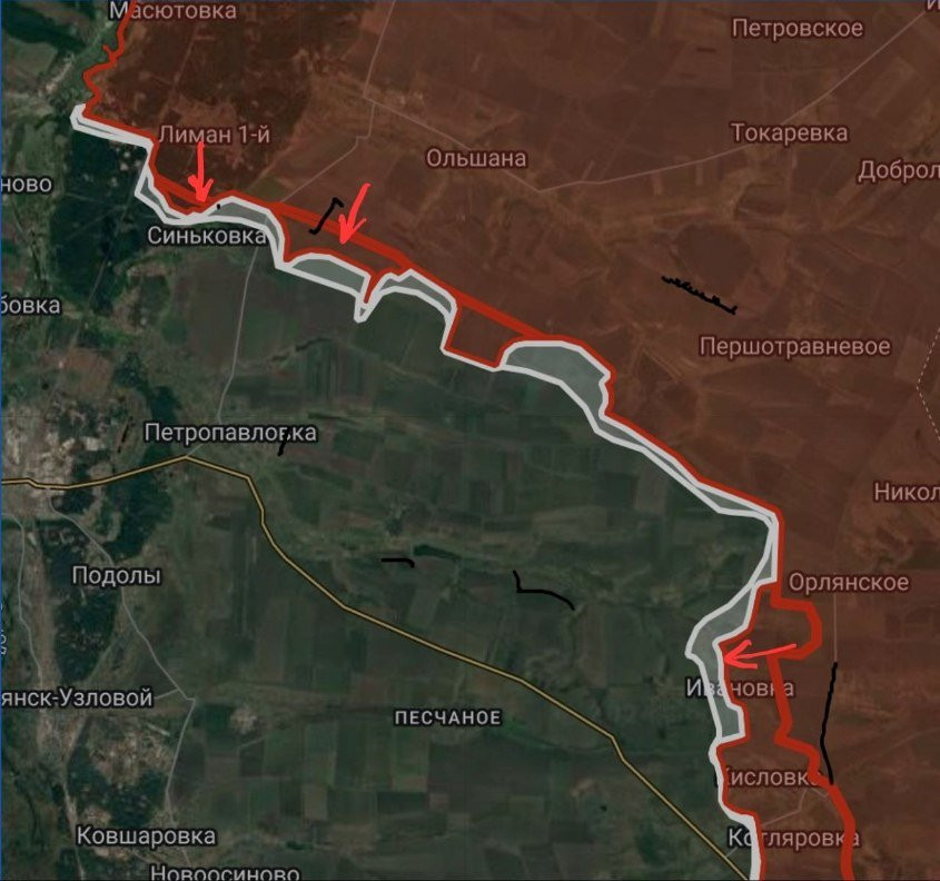 На Купянско-Лиманском направлении ВС РФ имеют тактические успехи в южной части Синьковки. Взяли под огневой контроль дорогу Петропавловка-Синьковка.