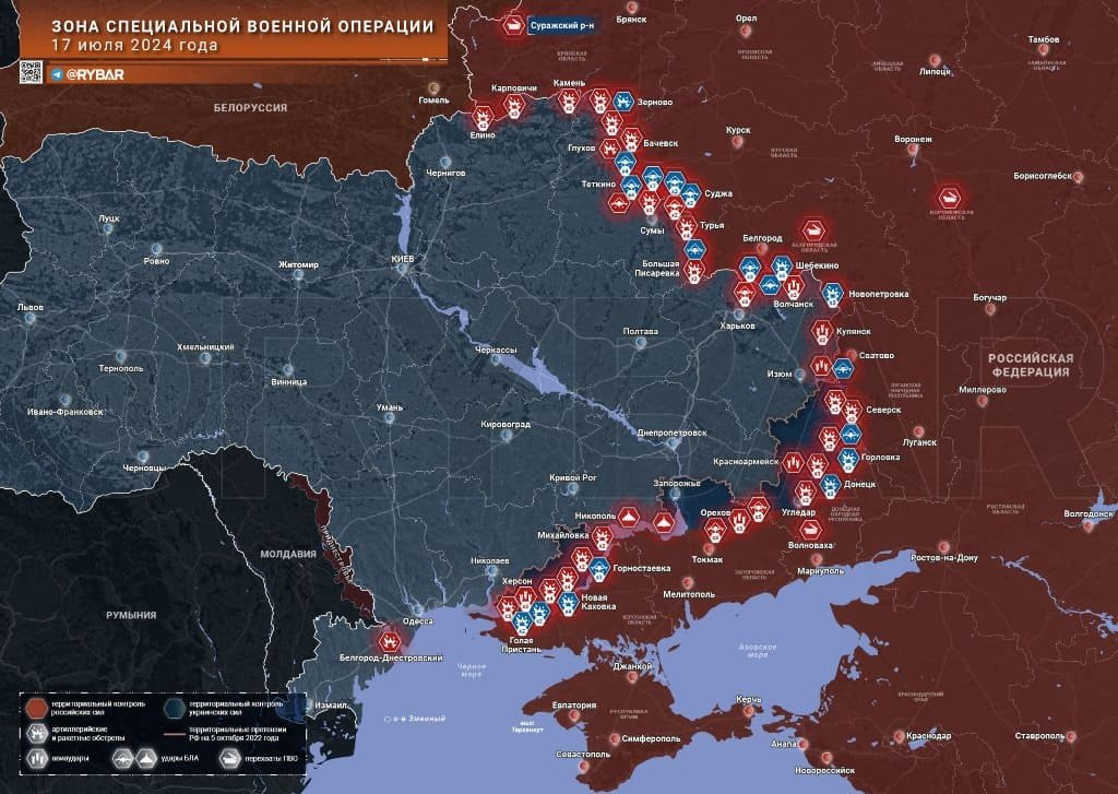 Новая карта боевых действий в зоне СВО на Украине сегодня, 18 июля 2024 года