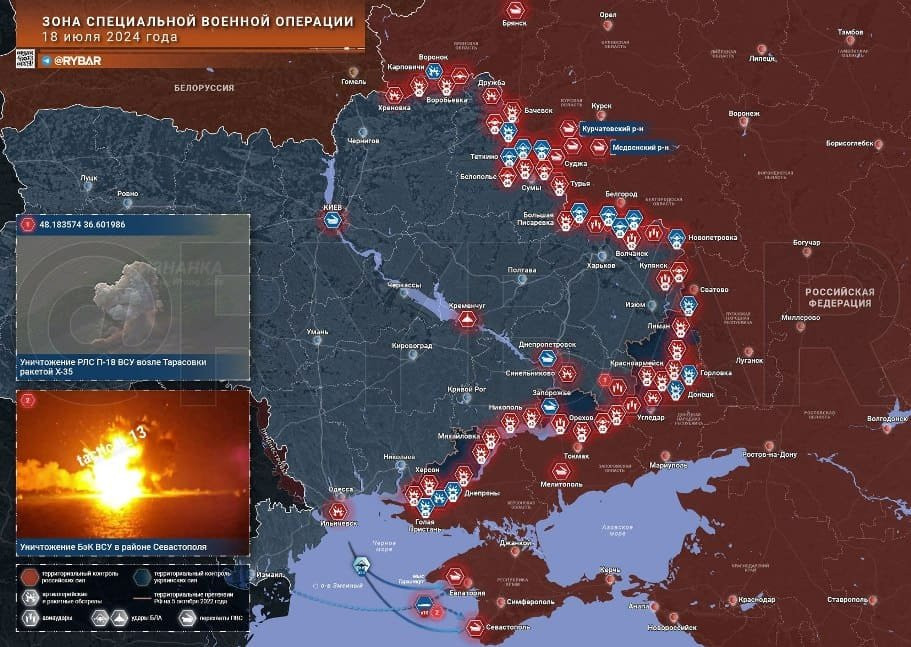 Новая карта боевых действий в зоне СВО на Украине сегодня, 19 июля 2024 года