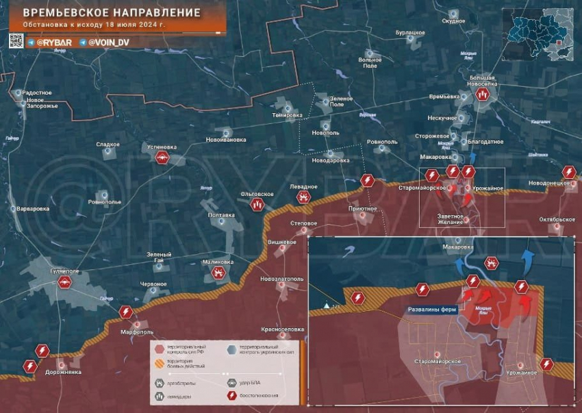 Свежая карта боевых действий на Украине: обстановка на фронтах на 19.07.2024