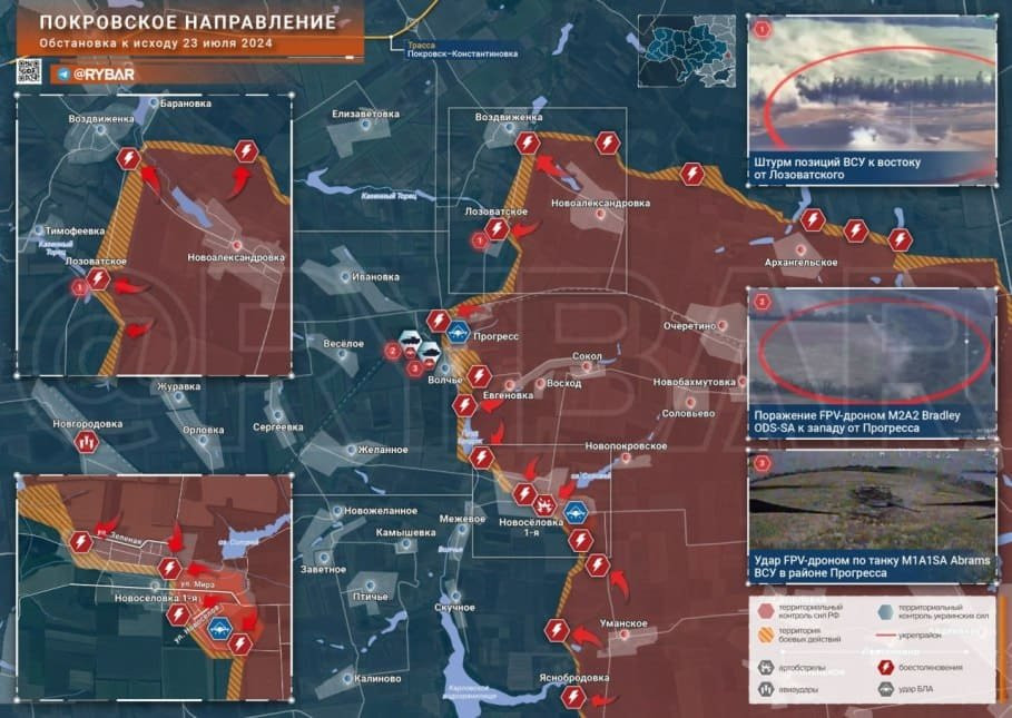 Новая карта боевых действий в зоне СВО на Украине сегодня, 24 июля 2024 года