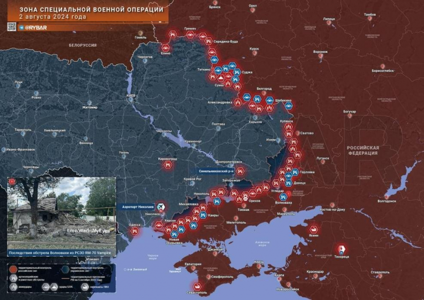Новая карта боевых действий в зоне СВО на Украине сегодня, 3 августа 2024 года