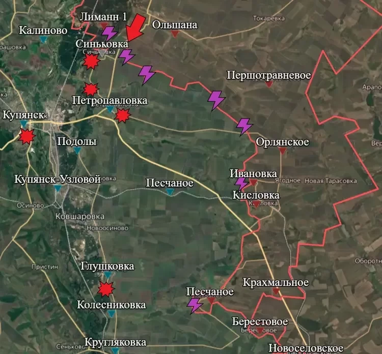 На Купянском направлении наши бойцы продолжают стараться отбить у ВСУ Синьковку, а также продвигаются восточнее и южнее села, закрепились в лесопосадках. Идут встречные бои неподалёку от Петропавловки, а также в районе Ивановки и Кисловки.