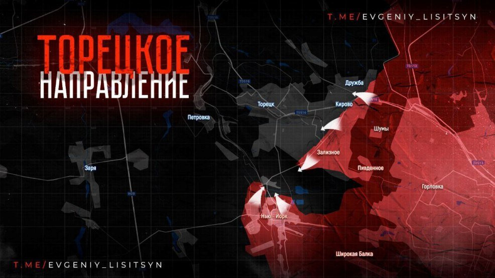 На Торецком направлении ВС РФ контролируют около 90 процентов территории Нью Йорка, откуда противник отходит в соседнюю Нелеповку. Также наши бойцы освободили Железное и территорию шахты Северная вместе с прилегающим терриконом в соседнем Артемово. В самом Торецке продолжаются уличные бои в городской застройке.