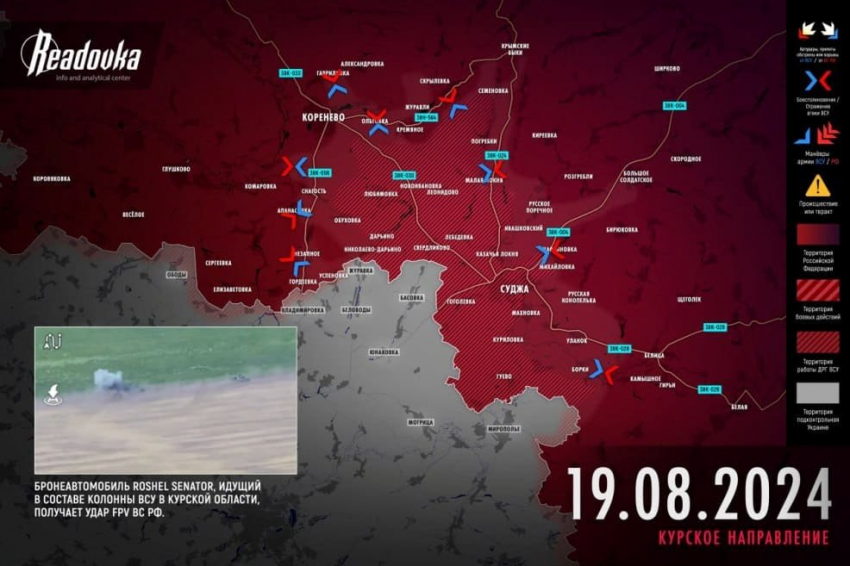 Новая карта боевых действий в зоне СВО на Украине на 20.08.2024