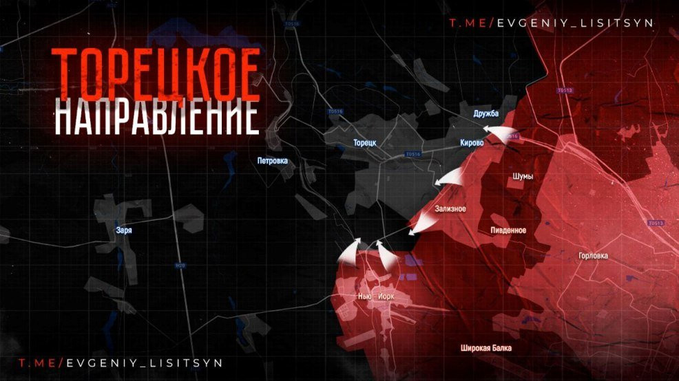 На Торецком направлении после освобождения Новгородского (Нью Йорка) российская армия приступила к зачистке Нелеповки. После ее освобождения наши бойцы смогут наступать на Торецк сразу с трёх направлений.